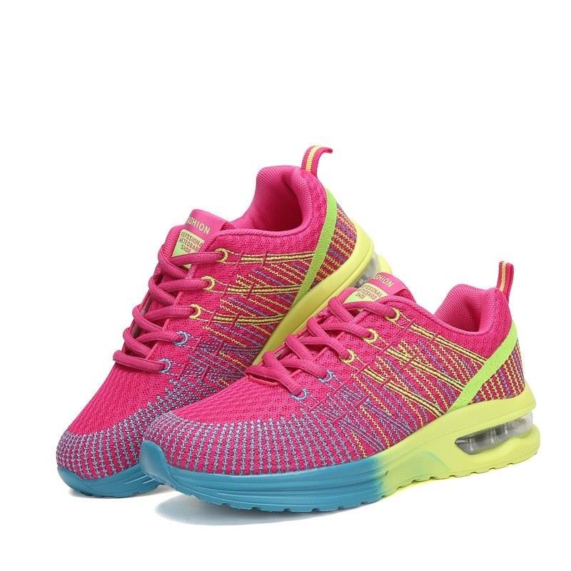 • Air Cushion Running Shoes Women Colorful Mesh Soft Sneakers Breathable Weave Jogging Walking Shoes Ladies Trainers Lace up
